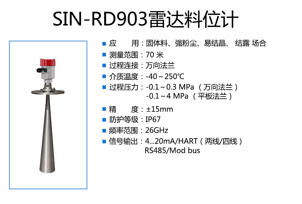 您的位置: 首頁 > 雷達液位計 >聯(lián)測_SIN-RD903雷達料位計_適用于固體料 結露 _