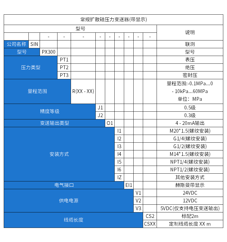 SIN-PX300型數顯壓力變送器采用無縫焊接結構,可批量化生產,經濟、可靠,具有良好的適應性,可應用于各種復雜的環境,該產品輸出形式多樣,壓力接口可提供定制,滿足您的使用需求。同時數顯壓力變送器帶有現場顯示功能,能夠更加直觀的顯示現場的壓力波動情況。廣泛應用于工業自動化設備配套以及石油、化工、冶金、電力等控制領域。